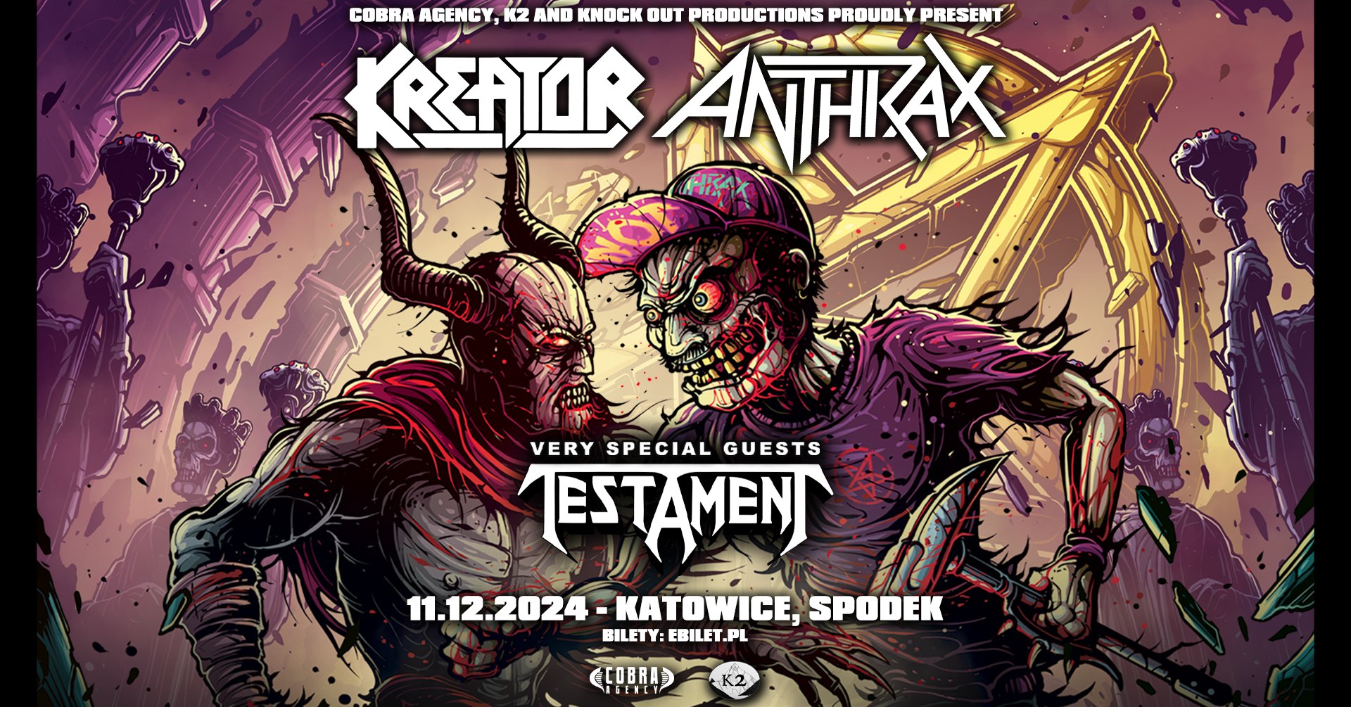 Na ten thrashowy, niezwykły wieczór w katowickim Spodku zapraszamy wraz z organizatorem Knock Out Productions. Jeśli jeszcze nie macie biletów to koniecznie zakupcie bo mamy przeczucie, że ten koncert się wyprzeda. Możecie je znaleźć w poniższych miejscach:
