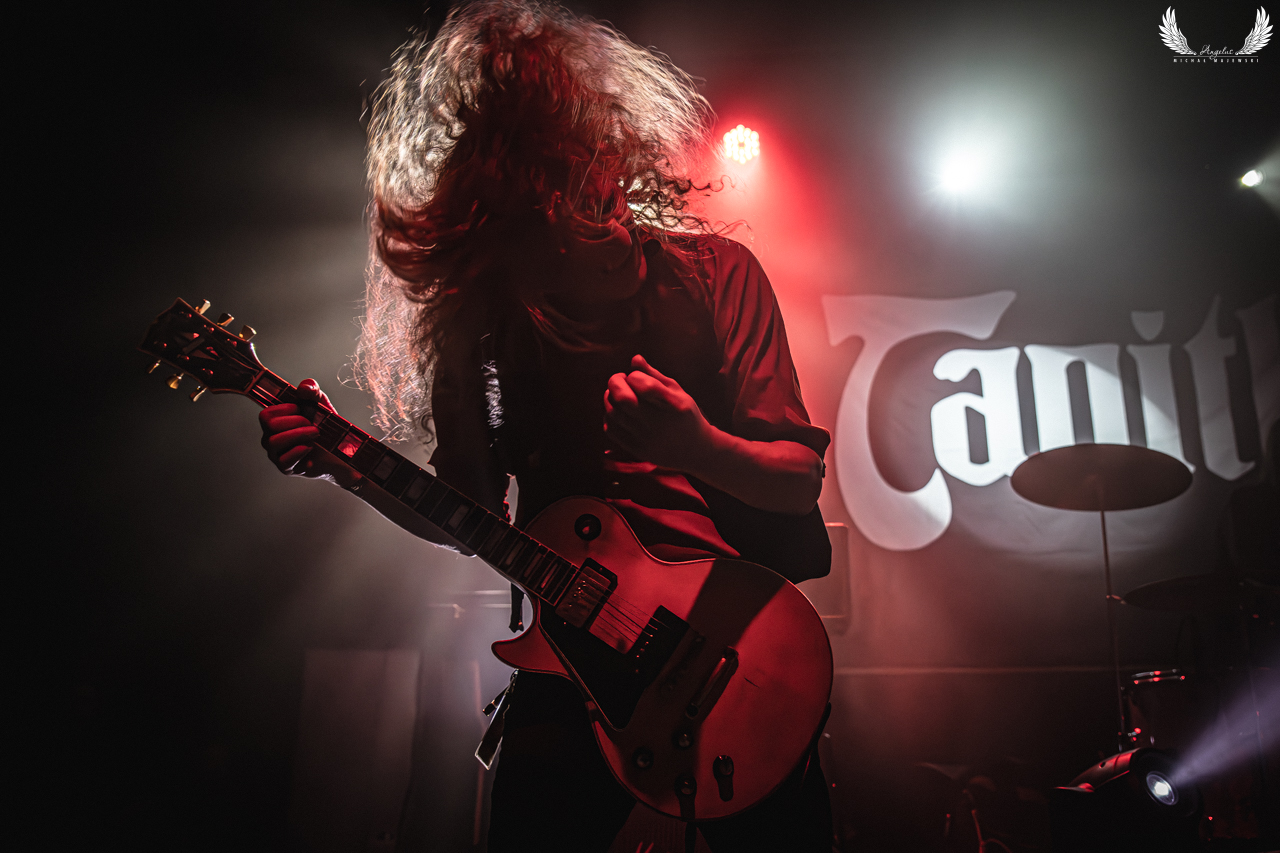 Koncert zespołu Tanith, który wystąpił jako jeden z supportów formacji Lucifer to był przykład występu zmasakrowanego przez akustyka. Występ ten nie podobał mi się wcale bo ciężko było cokolwiek usłyszeć. Już pomijam fakt świateł bo były chyba najlepsze podczas tego całego wieczoru (i tylko perkusista się niestety nie załapał na jakiś godny kadr). Ale moja ciekawość była duża jeśli chodzi o twórczość tego kwartetu pochodzącego z nowojorskiego Brooklynu. I jak to mam w zwyczaju podczas prac nad galerią posłuchałem obu albumów i stwierdzam, że ich muzyka jest bardzo dobra. Hard rock wymieszany z heavy metalem podlany również retro rockiem brzmi bardzo ciekawie. I jeszcze to wszystko okraszone jest podwójnym wokalem damsko-męskim. Także może kiedyś jeszcze się wybiorę na ich koncert bo szczególnie zeszłoroczna płyta „Voyage” brzmi świetnie. Zapraszam serdecznie na ostatnią galerię z 15 listopada.
