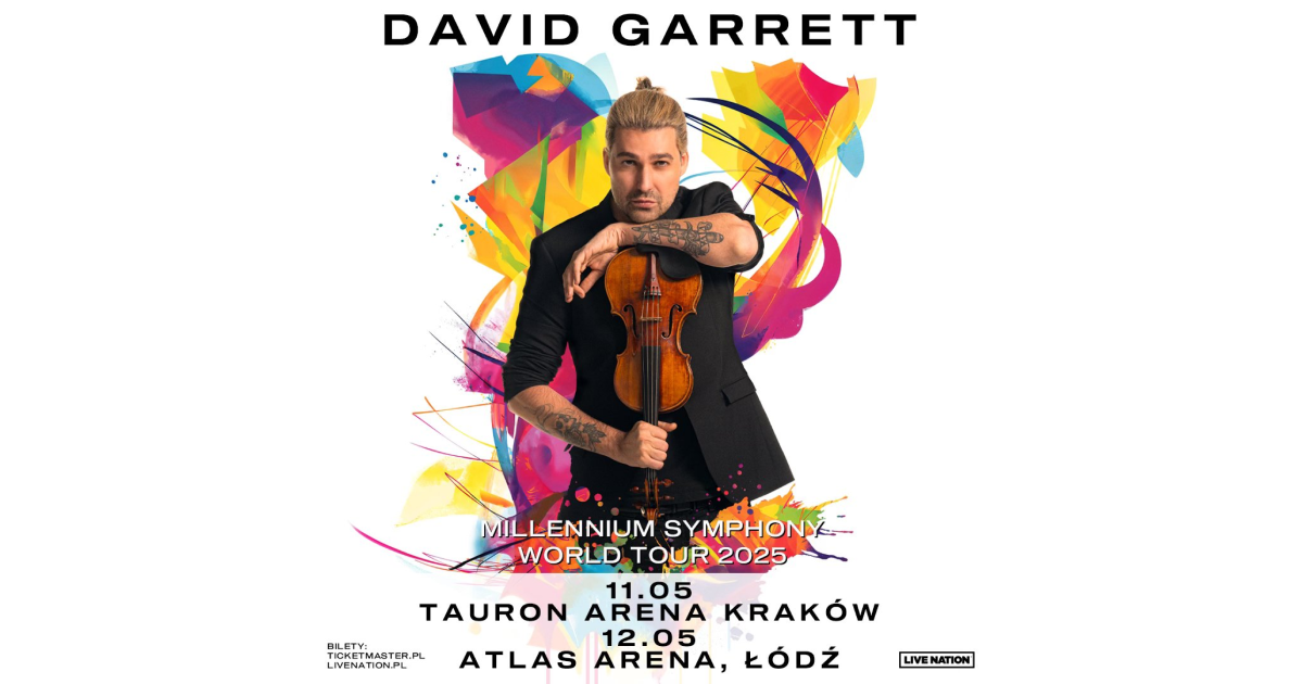 David Garrett nieustannie zachwyca świat muzyki genialnymi wariacjami skrzypcowymi. W ciągu swojej kariery, trwającej już ponad trzy dekady, zdobył serca milionów dzięki mistrzowskim interpretacjom muzyki klasycznej oraz jako unikalny artysta łączący gatunki, który zaciera granice między muzyką klasyczną a popularną, otwierając przed nią nowe wymiary. Teraz rozpoczyna się nowy, ekscytujący rozdział w karierze Davida Garretta wraz z wydaniem jego albumu „Millennium Symphony”, który przekształca największe hity ostatnich 25 lat w olśniewające pejzaże dźwiękowe. Towarzyszy temu nowy kierunek koncertowy, który wyznacza kontrakt z Live Nation, podpisany przez Davida oraz CEO Live Nation Michaela Rapino w Los Angeles. Kontrakt ten otwiera drzwi do międzynarodowej trasy koncertowej. David Garrett, wraz ze swoim zespołem i orkiestrą, wystąpi na żywo w Niemczech, Austrii, Szwajcarii i wielu innych krajach. W Polsce będzie można go zobaczyć dwukrotnie w 2025 roku – w Krakowie 11 maja oraz w Łodzi 12 maja.