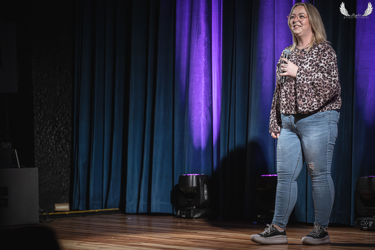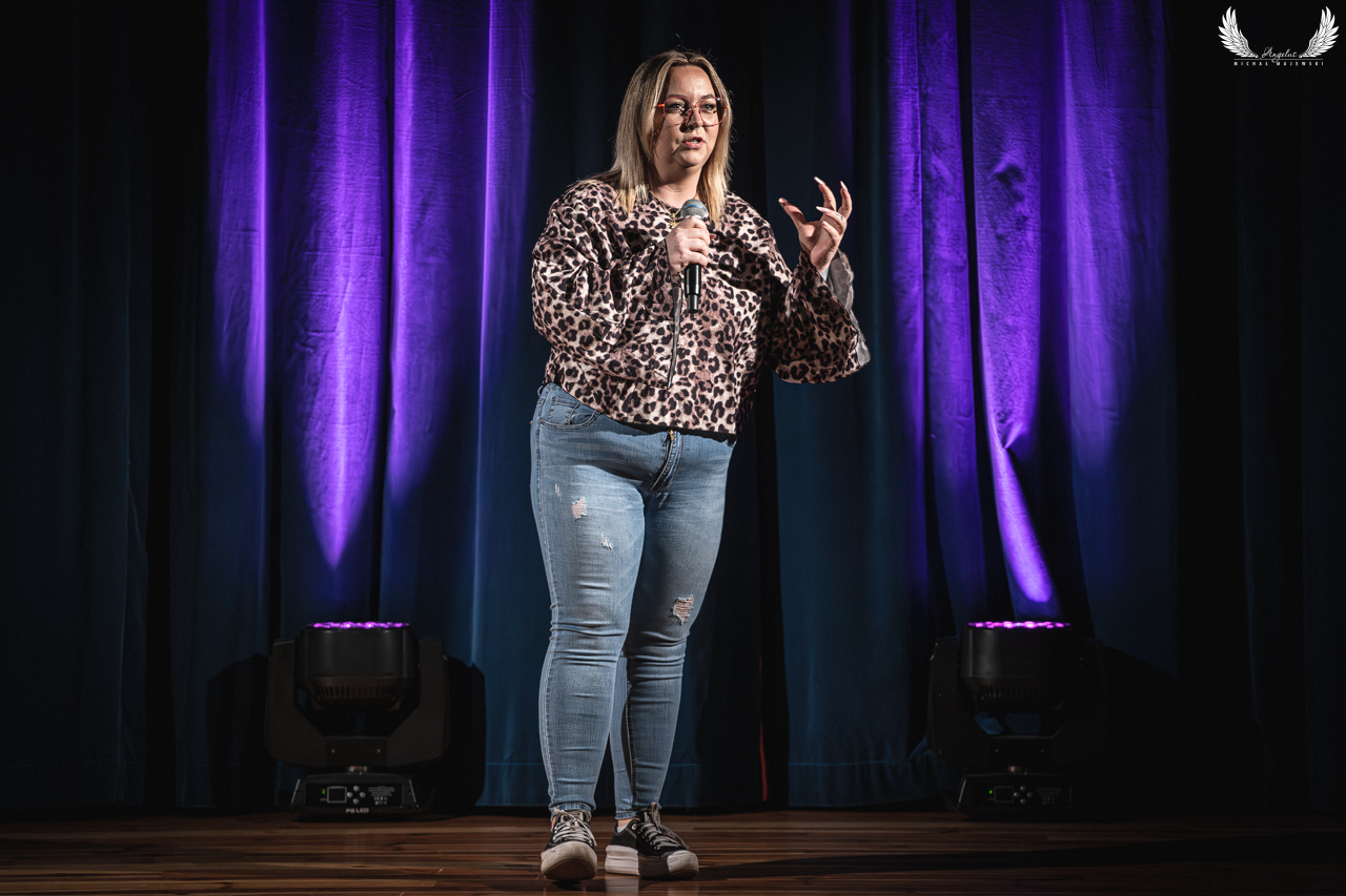 Wczorajszy wieczór w Przystanku Otwartej Kultury należy uznać za bardzo udany. Mieliśmy tę przyjemność pojawić się na stand-upie znanej z social mediów Mamy Na Obrotach, która zaprezentowała swój nowy program „Kiedyś, a dziś”. Popularność Klaudii jest widoczna gołym okiem bo sala była wypełniona prawie po brzegi. Nam się bardzo podobało bo żarty były na poziomie, program spójny, fajne zakończenie (nie będę spoilerował bo też wtedy już nie mogłem robić zdjęć). Idźcie a nie pożałujecie!