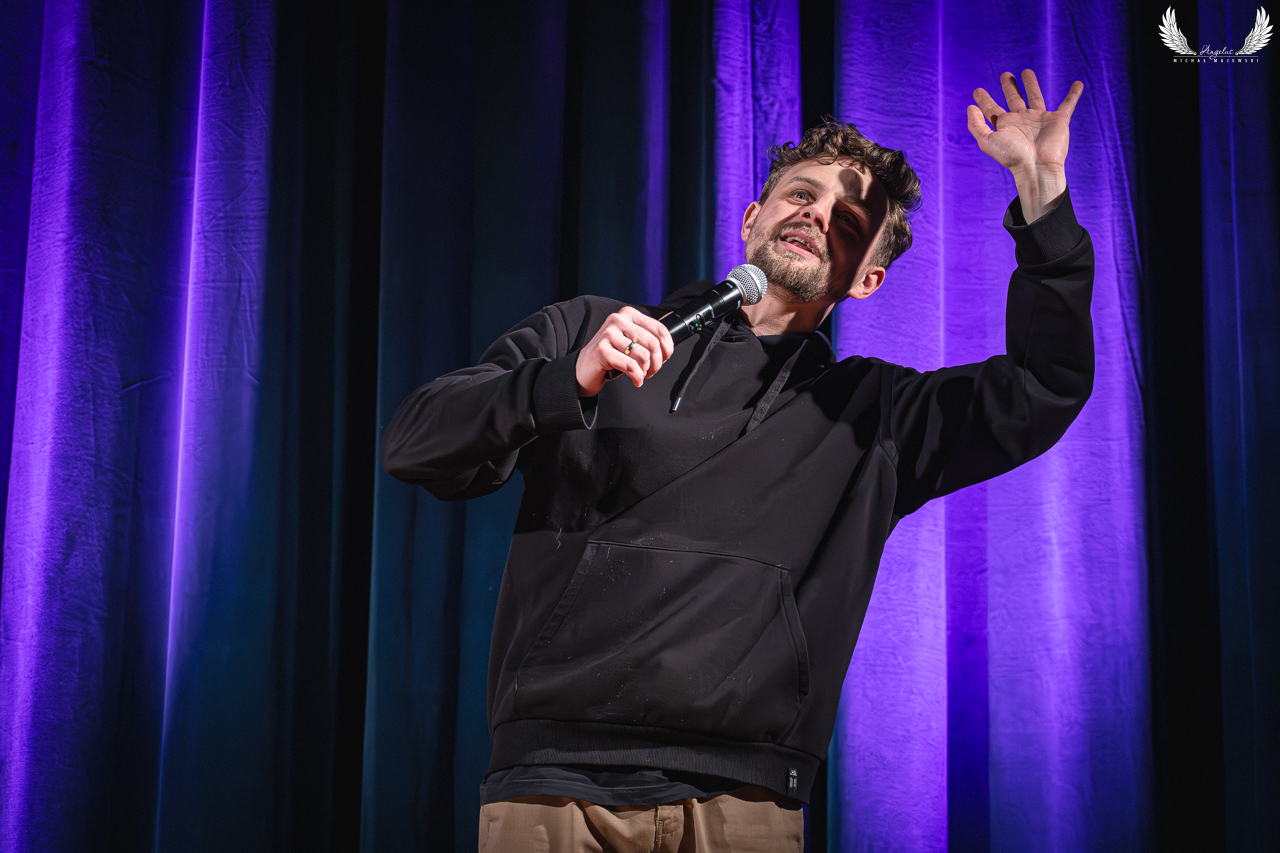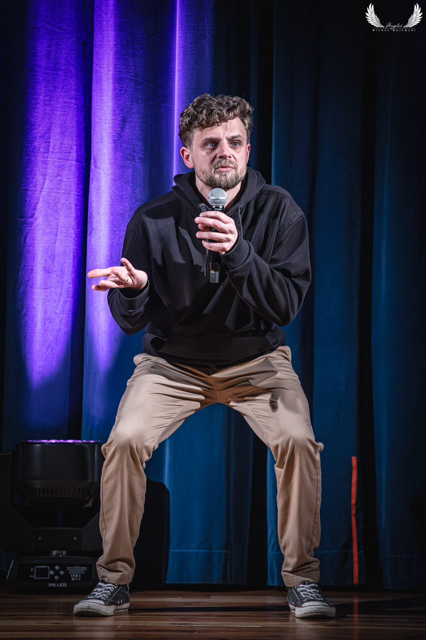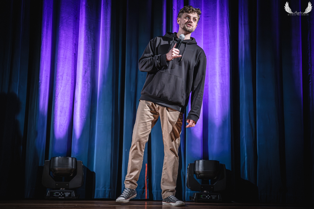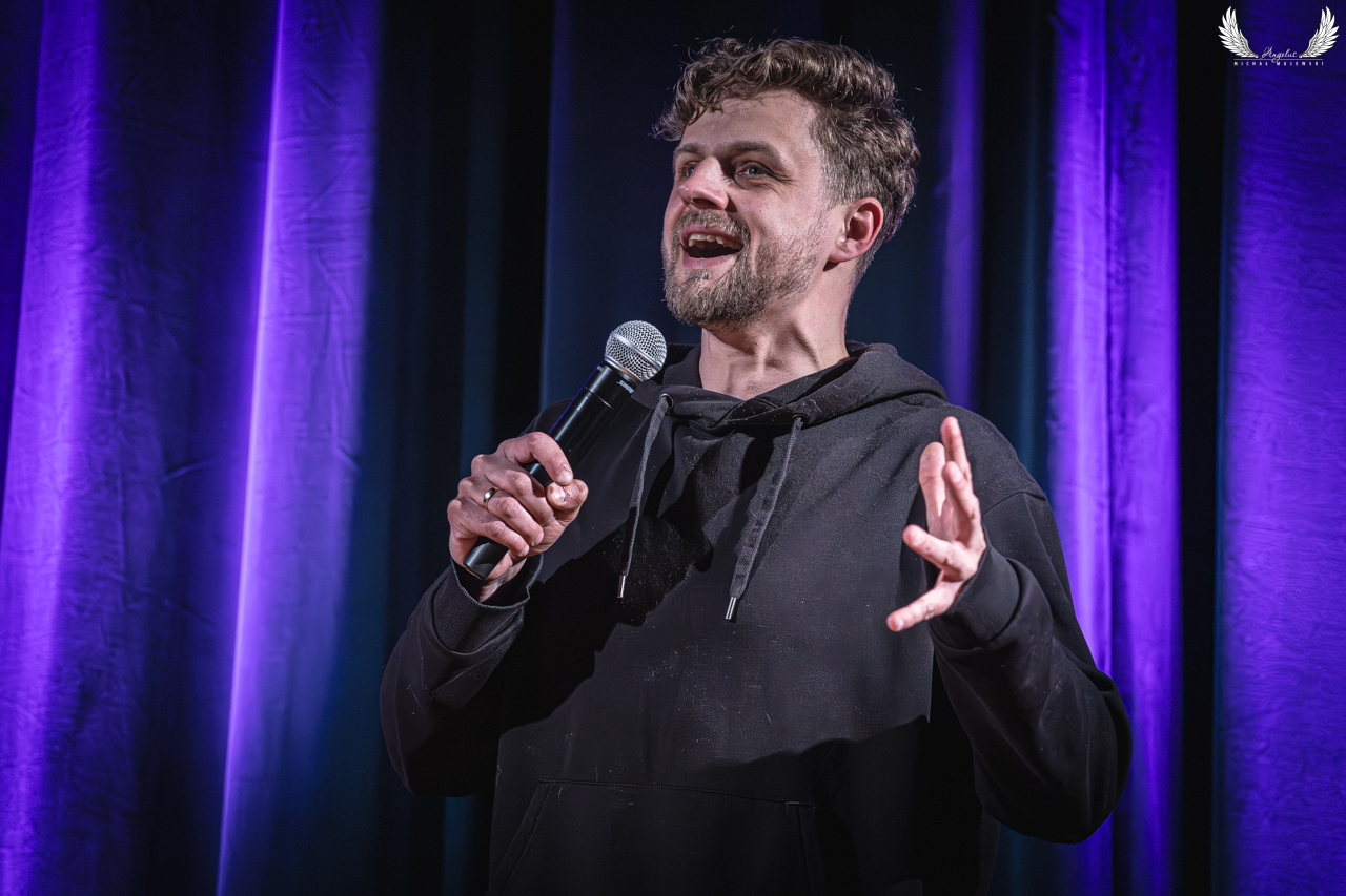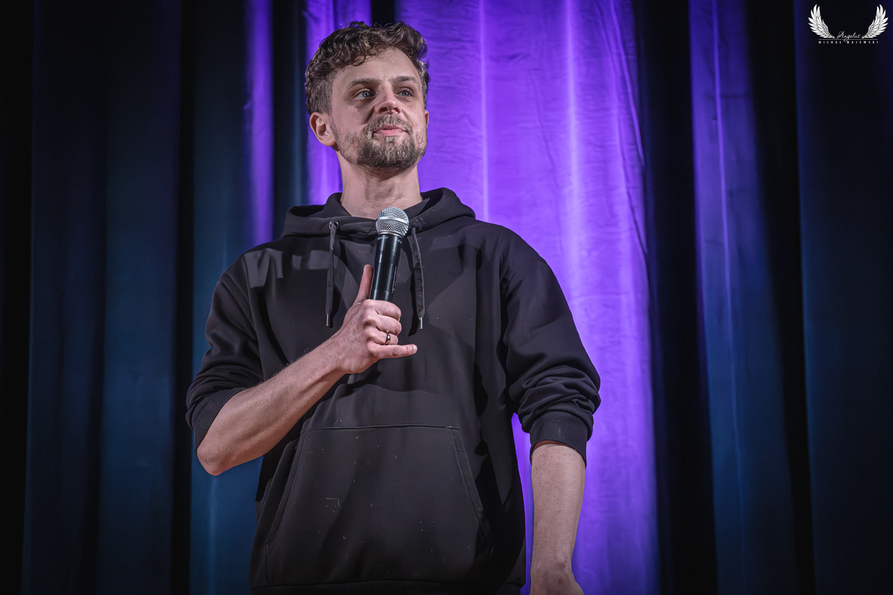 Należy jeszcze wspomnieć o występie supportu, którym był tym razem nasz lokalny komik – Piotr Przytuła. Występował on tego wieczora również w roli biletera jak i ochroniarza ;). Bardzo mi też przypadł do gustu jego 15-minutowy występ. Zabawny i dość dynamiczny (bo dużo się Piotr nabiegał na scenie). A teraz już zapraszam na galerię poniżej (jest to pierwsza tego typu u nas). Podziękowania dla Przystanku Otwartej Kultury za ogarnięcie wejściówki na to wydarzenie.