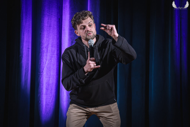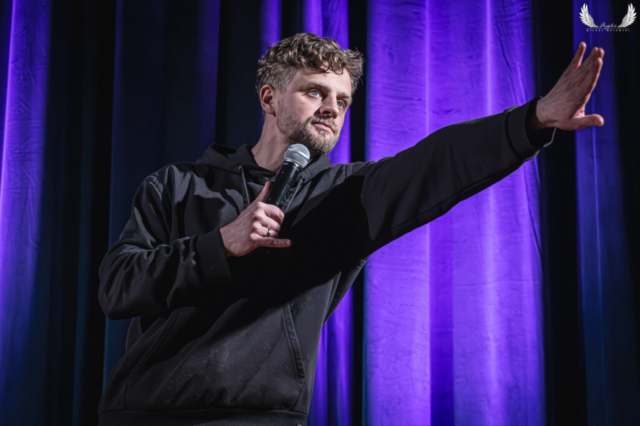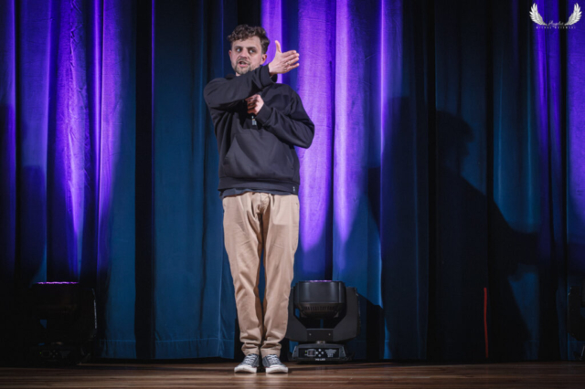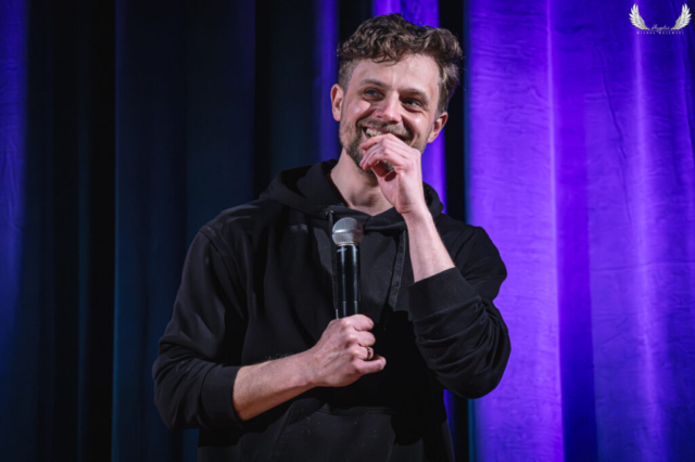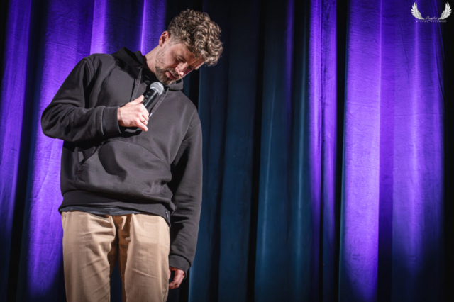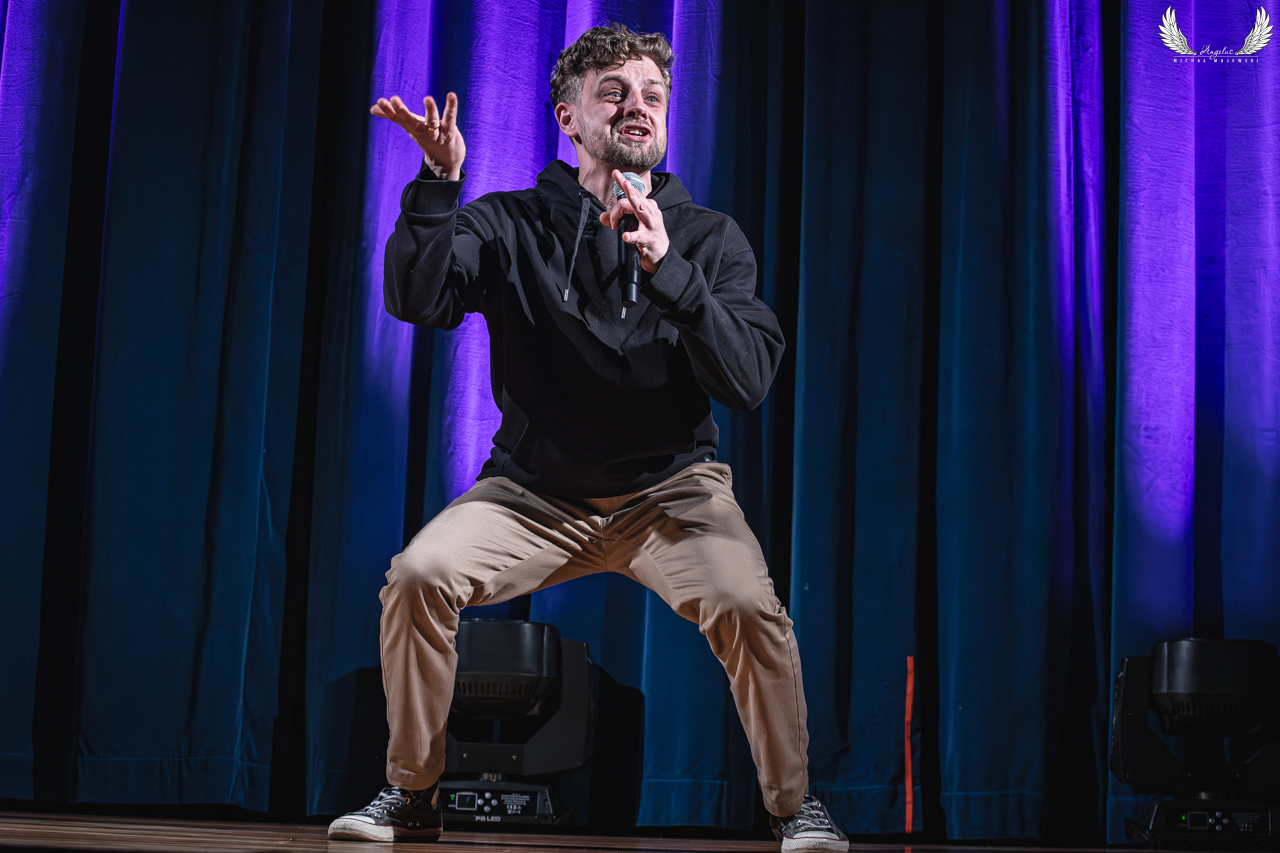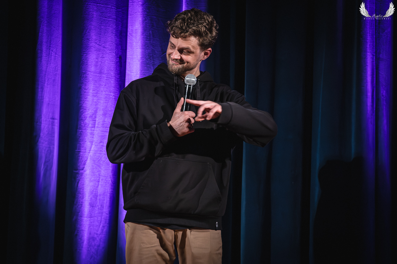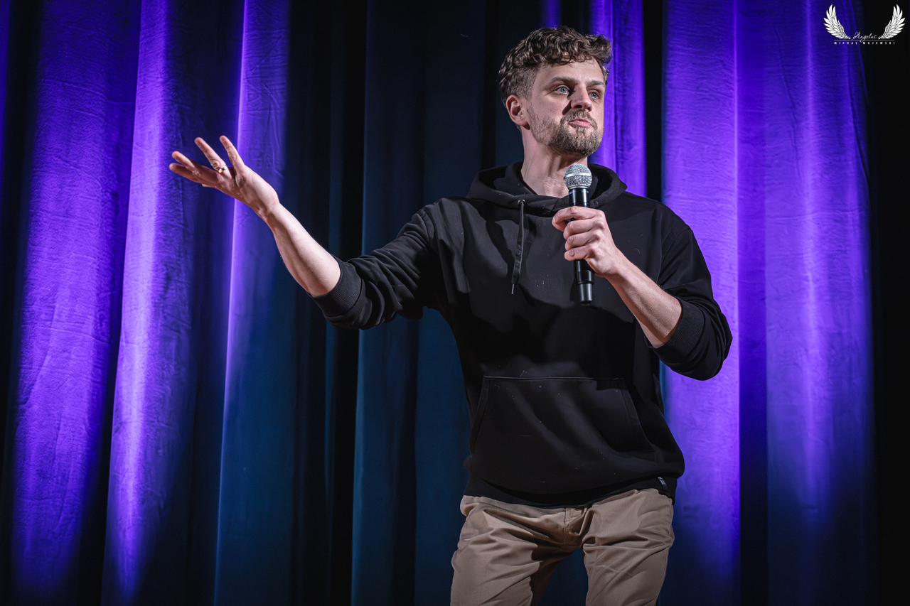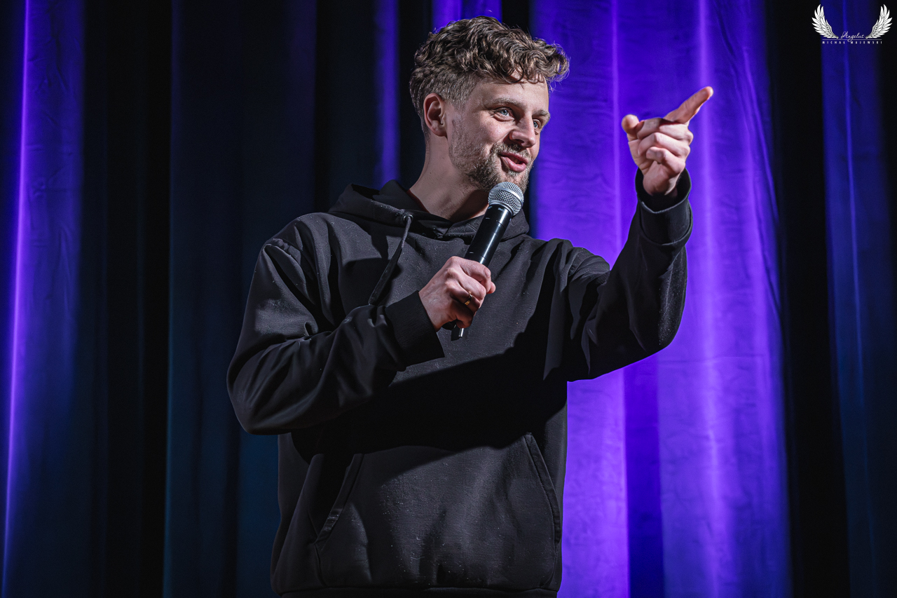 Należy jeszcze wspomnieć o występie supportu, którym był tym razem nasz lokalny komik – Piotr Przytuła. Występował on tego wieczora również w roli biletera jak i ochroniarza ;). Bardzo mi też przypadł do gustu jego 15-minutowy występ. Zabawny i dość dynamiczny (bo dużo się Piotr nabiegał na scenie). A teraz już zapraszam na galerię poniżej (jest to pierwsza tego typu u nas). Podziękowania dla Przystanku Otwartej Kultury za ogarnięcie wejściówki na to wydarzenie.