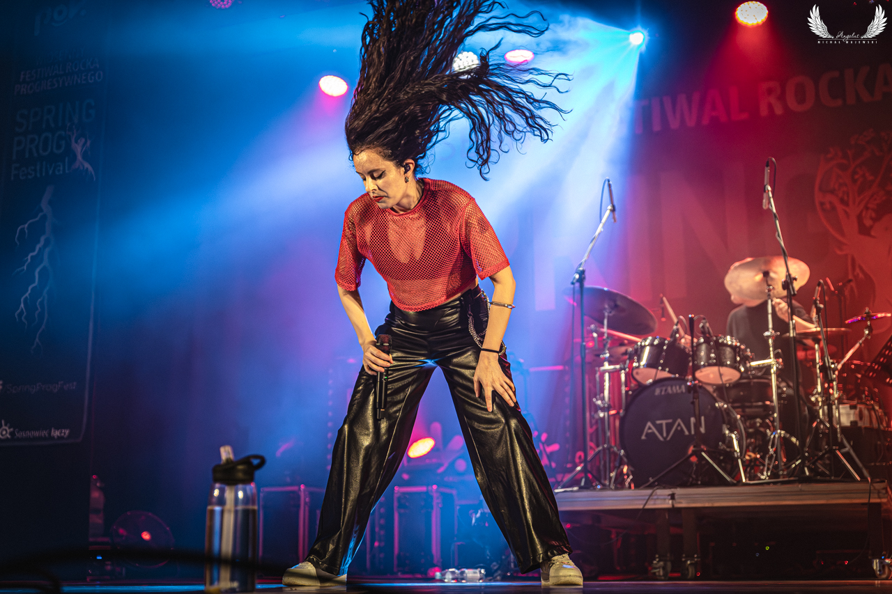 Czas na najbardziej energetycznego uczestnika Spring Prog Festival w tym roku. Dziś zapraszam na zdjęcia z koncertu zespołu ATAN, który ostatnimi czasy opanował social media ale również różnego rodzaju portale i gazety muzyczne. To wszystko za sprawą niedawno wydanego, podwójnego albumu „Metamorphic” (moim skromnym zdaniem świetnego, szczególnie jeśli chodzi o pierwszy krążek, w drugi jeszcze muszę się wgryźć). I to utwory z tego albumu przeważały podczas tego występu. Pojawiły się m.in. świetne „Scapegoat” czy „Fodder”. Nie zabrakło klasycznych kompozycji takich jak: „Amends” czy mojej ukochanej „Faces”. Ta mieszanka djentu i progmetalu trafia do mnie. No i wokal Claudii: tak w partich spokojnych czy bardziej growlowych – uwielbiam. Mój kolega napisał mi w wiadomości prywatnej – „When Jinjer goes proggy” no i to dobrze podsumowuje tę muzykę. Ja trzymam kciuki za Claudię, Andrzeja i Marcina, i wierzę, że jeszcze nie raz się spotkamy. Nie sposób również nie wspomnieć o Jeremiaszu Baumie, który świetnie odrobił lekcję i zagrał za „garami”. Piękny to był koncert, nie zapomnę go długo. Poniżej zapraszam na galerię z występu ATAN.
