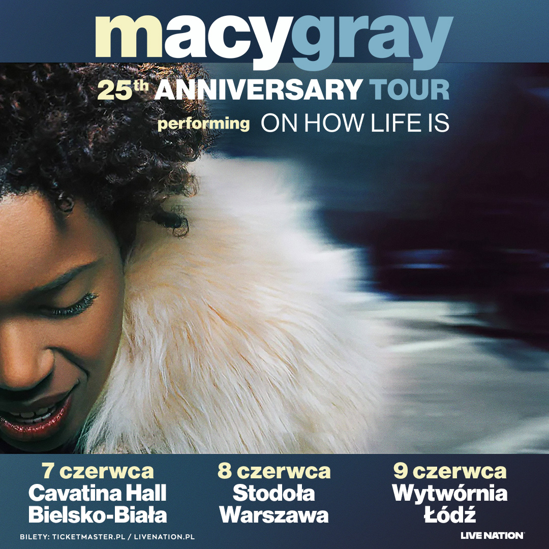 Jedna z gwiazd muzyki R&B i soulu – Macy Gray wystąpi trzykrotnie w naszym kraju już w czerwcu. Jej niepowtarzalny, chropowaty głos, autentyczne teksty oraz odwaga w eksperymentowaniu z brzmieniami sprawiają, że od ponad dwóch dekad pozostaje wyjątkową postacią na światowej scenie muzycznej. Debiutancki album „On How Life Is” (którego 25-lecie jest obchodzone podczas tej trasy) uczynił ją międzynarodową gwiazdą, a singiel „I Try” przyniósł jej nagrodę GRAMMY® i miejsce w kanonie współczesnej muzyki. Z ponad 25 milionami sprzedanych płyt na koncie, Gray współpracowała z takimi artystami jak Bobby Brown, Ariana Grande i Galactic, nieustannie poszerzając swoje muzyczne horyzonty. Poza karierą muzyczną, Macy Gray odnosi sukcesy także jako aktorka. Pojawiła się m.in. w kultowym „Dniu Próby” u boku Denzela Washingtona, a także w filmach „For Colored Girls”, „Brotherly Love” oraz serialu „Fuller House”. W 2023 roku ukazał się jej album „The Reset”, nagrany z zespołem The California Jet Club, który jest muzycznym komentarzem do współczesnego świata i redefiniuje granice muzyki pop. W 2024 roku artystka powróciła z nowym singlem „I AM”, nagranym wspólnie z Big Freedią – pozytywnym, pełnym energii utworem o sile samoakceptacji i autentyczności.