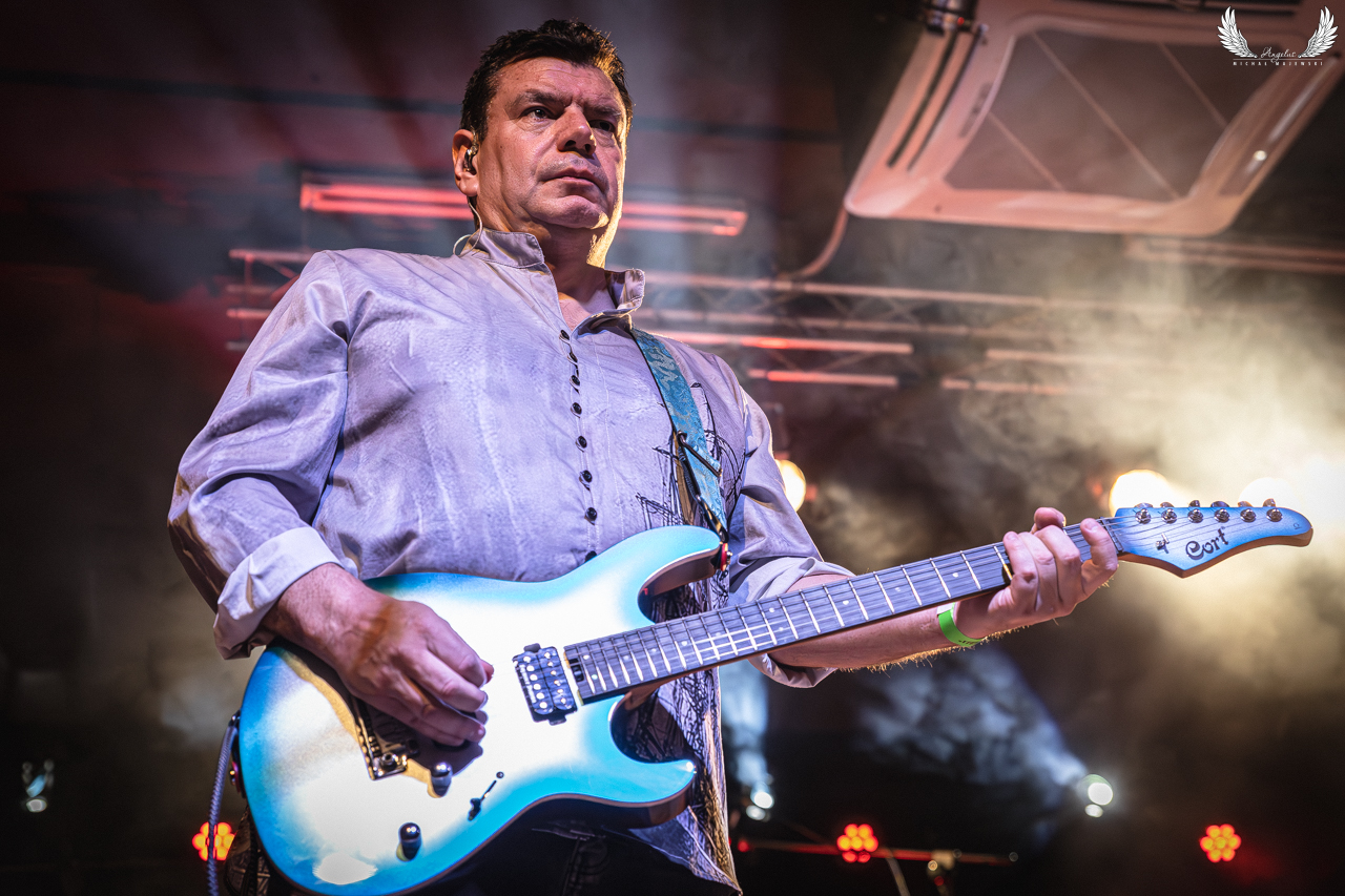 Po emocjach wieczoru wyborczego zapraszam Was dziś na galerię z kolejnego, świetnego wieczoru w tym roku. Naprawdę, skończył się właśnie maj a ja mogę policzyć na palcach jednej ręki, że widziałem słabsze koncerty a słuchałem już prawie 50 wykonawców w tym roku. Dzisiejszymi bohaterami jest zasłużony, neoprogresywny zespół Arena, który przyjechał do Polski świętować 30-lecie istnienia jak również wydania debiutu „Songs from Lions Cage”. Koncert w Piekarach był znakomity jak również trochę szalony. Damian Wilson w pewnym momencie upuścił mikrofon, który wymagał wymiany (później wylewnie przepraszał swojego akustyka podczas koncertu). Wśród publiczności (poprosił o zrobienie korytarza bo było bardzo dużo ludzi) wykonał moja ulubioną kompozycję „The Equation (The Science of Magic)”. Zresztą to jakim wspaniałym wokalistą i frontmanem jest wspomniany Damian pokazał ten koncert. Zespół nabrał nowej jakości dzięki niemu. Warstwa instrumentalna jest również nieskazitelna. Ojcowie – założyciele czyli Clive Nolan i Mick Pointer dobrali sobie tak rewelacyjnych gitarzystów: Johna Mitchella na elektrycznej i Kylana Amosa na basowej, że nie było się do czego przyczepić. Do tego historie opowiadane przez Clive’a czy też Johna nadały jeszcze dodatkowego kolorytu. Ponad dwie godziny wspaniałej muzyki – świetnie nagłośnionej – co muszę podkreślić, bo ostatnio jak byłem w Andaluzji nie było dobrze a do tego dołożone nowe światła sprawiły, że to był niezapomniany wieczór dla mnie jak i licznie zebranej publiczności w Piekarach Śląskich. Pięknie dziękuję Ośrodkowi Kultury Andaluzja ponownie za akredytację a Independent Music Market za organizację tego koncertu. A teraz już galeria, na którą zapraszam poniżej.