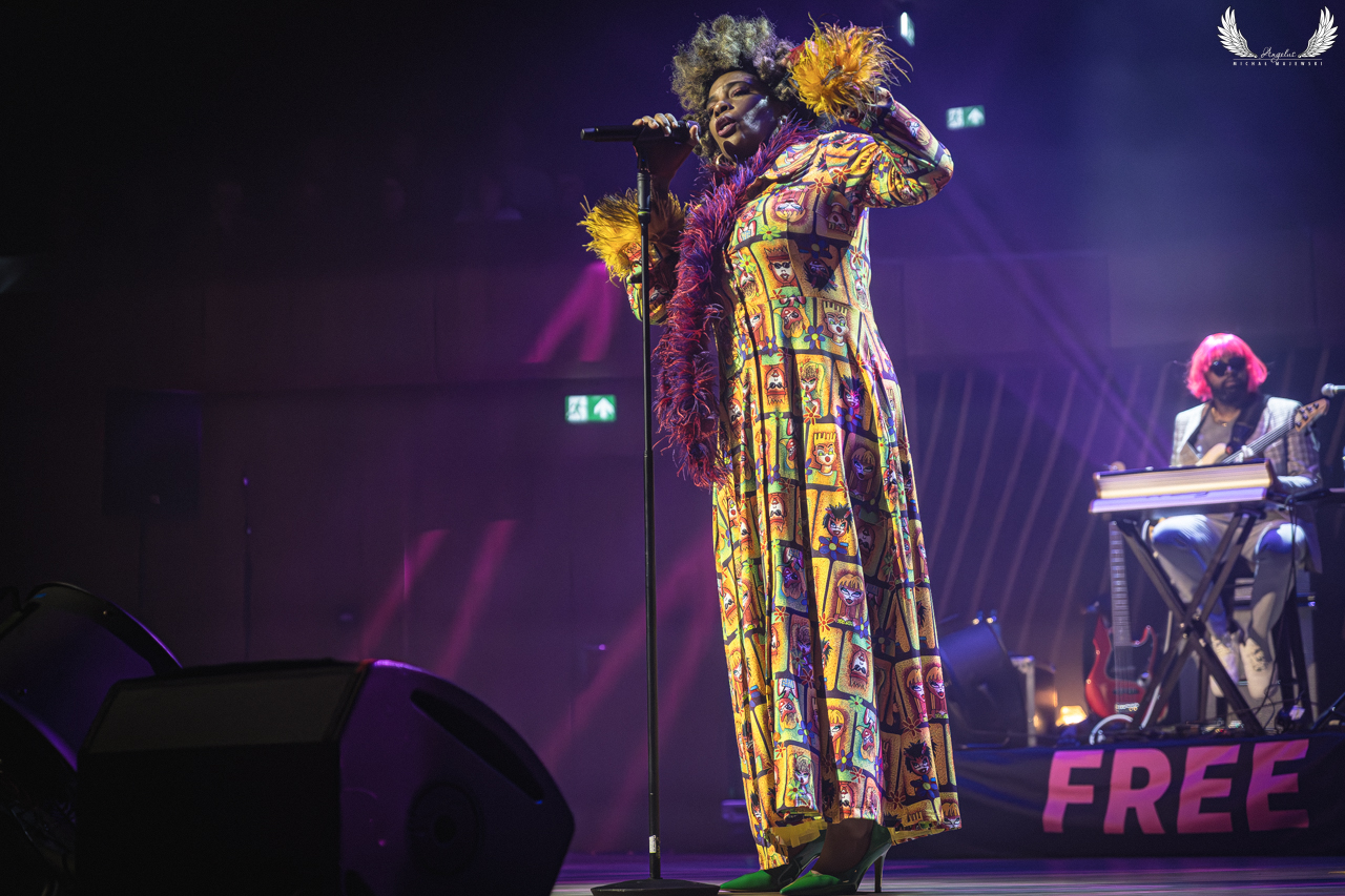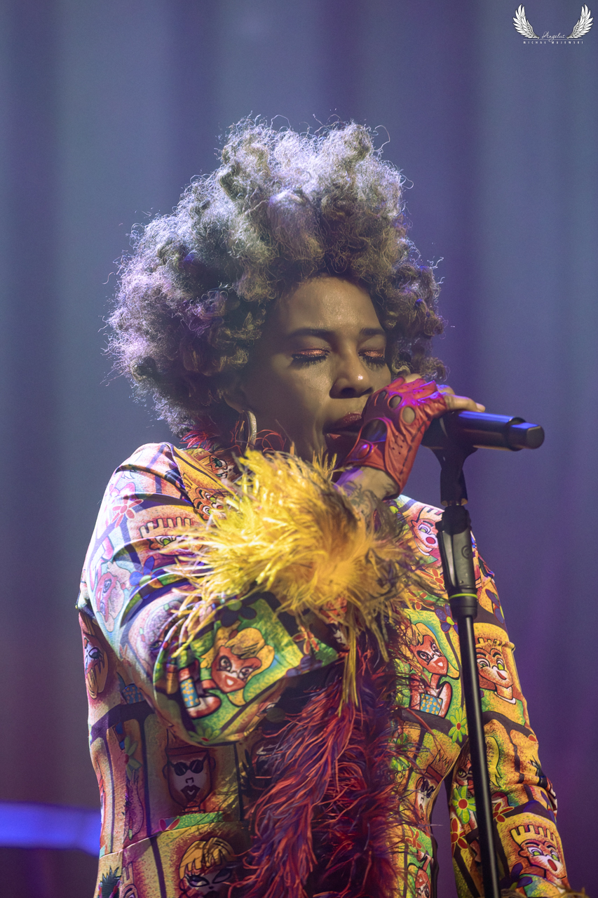 Mój debiutancki koncert w przepięknej Cavatina Hall miał miejsce w ostatnią sobotę. Okazja była niezwykła bo też ze swoją jubileuszową trasą przyjechała amerykańska gwiazda muzyki soul i R&B – Macy Gray. „On How Life Is” tak po prawdzie zostało wydane w 1999 roku ale trasa ta rozpoczęła się w zeszłym roku. W końcu jednak dotarła do naszego kraju a jej pierwszym przystankiem było Bielsko-Biała. I koncert był to wyborny tak pod względem wykonawczym jak i akustycznym. Wszystko czyściutko i selektywnie, artystka w znakomitej formie wokalnej ze świetnymi muzykami na czele z gitarzystką Mayaeni Strauss, która też dobrze wypadała w chórkach. Sama Macy to jest żywioł na scenie no i łapie szybko kontakt z publicznością. Zaprasza do tańca, śpiewu czy krzyku. Aż szkoda, że ten koncert był siedzący bo niejednokrotnie aż się człowiek zrywał z krzesełka. Artystka jak na jubileuszową trasę przystało zagrała większość wspomnianej płyty z rewelacyjnymi wykonaniami „Sex-o-matic Venus Freak” czy „Still”. Nie mogło zabraknąć największego przeboju na zakończenie podstawowego setu, który otworzył Macy drogę na szczyt czyli „I Try”, które chyba jednak już jej się trochę „przejadło” i zapraszała do śpiewania refrenu publiczność, a ona chóralnie wykonywała ten fragment za artystkę. Ja nie mogłem wyjść wrażenia z jak zabrzmiała przedłużona wersja „Relating to a Psychopath”. Mistrzostwo świata! Serdecznie wszystkim polecam koncerty Macy Gray bo są rewelacyjne a do tego w takich okolicznościach przyrody jakim jest bielska Cavatina Hall to jest czysta przyjemność. Poniżej galeria z koncertu Macy Gray, na którą serdecznie zapraszam.