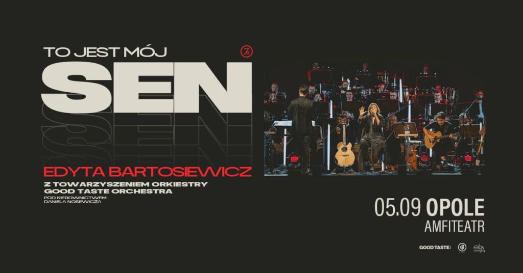 Edyta Bartosiewicz kontynuuje doskonale przyjętą przez fanów i media jubileuszową trasę koncertową z okazji 30-lecia albumu „Sen”. We wrześniu artystka wspólnie z Good Taste Orchestra pod kierownictwem Daniela Nosewicza pojawi się w Amfiteatrze Tysiąclecia w Opolu.