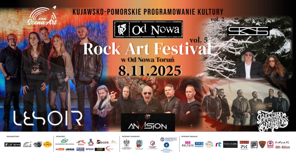 Piąta edycja Rock Art Festival w toruńskiej Od Nowie, również zawiera się w omawianym przez nas cyklu. Tym razem gwiazdą wieczoru będzie holenderski zespół Lesoir. Pozostałymi wykonawcami będą: The Skys pochodzący z Litwy oraz polskie Anvision oraz Bastard Brothers. Szczególnie czekam na występ tarnowskiej formacji, która wraca do nas po dłuższej przerwie a ten występ będzie szczególny bo też zapewne poświęcony zmarłemu przedwcześnie przyjacielowi i wieloletniemu managerowi zespołu – Wojtkowi Marszałkowi. Bilety na ten wieczór są wciąż dostępne i możne je kupić tutaj: