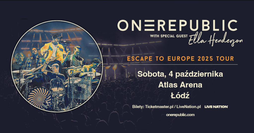 Nominowany do nagród GRAMMY® zespół OneRepublic przyjedzie do Polski w ramach „Escape to Europe” Tour. która będzie obejmować 27 koncertów i rozpocznie się 18 września w Dublinie. Pojawi się m.in. we Francji, Niemczech, Holandii oraz na jedynym koncercie w naszym kraju. Gospodarzem tego wieczoru będzie Atlas Arena w Łodzi. Jako gość specjalny na wspomnianej trasie One Republic będzie brytyjska wokalistka Ella Henderson.
