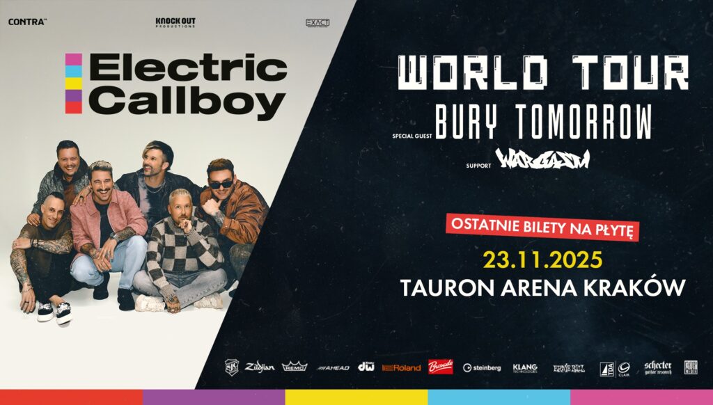 Gdy grali u nas w 2023 roku i bez najmniejszego problemu wyprzedawali kluby. Teraz czas na podbój krakowskiej Tauron Areny. Zespół zaprosi Was do tańca 23 listopada 2025 roku. Electric Callboy są bożyszczami tłumów, na co w zupełności zasłużyli. Ich mariaż electronicore’u (czyli metalcore’u i tanecznej elektroniki) z alternatywnymi stronami rocka czy nawet konwencją eurodance’u naturalnie zdobywa serca odbiorców na całym świecie. Gośćmi zespołu będą dwa brytyjskie zespoły: Bury Tomorrow i Wargasm.