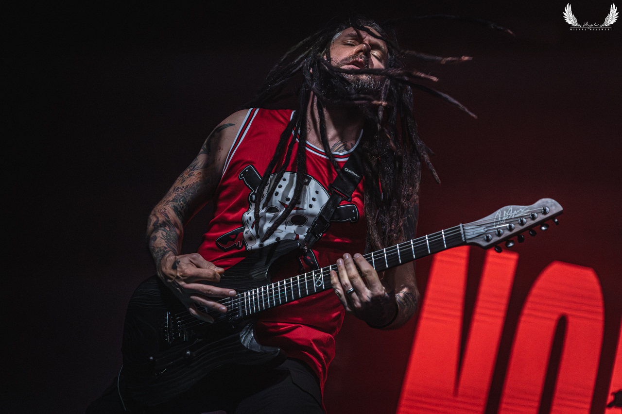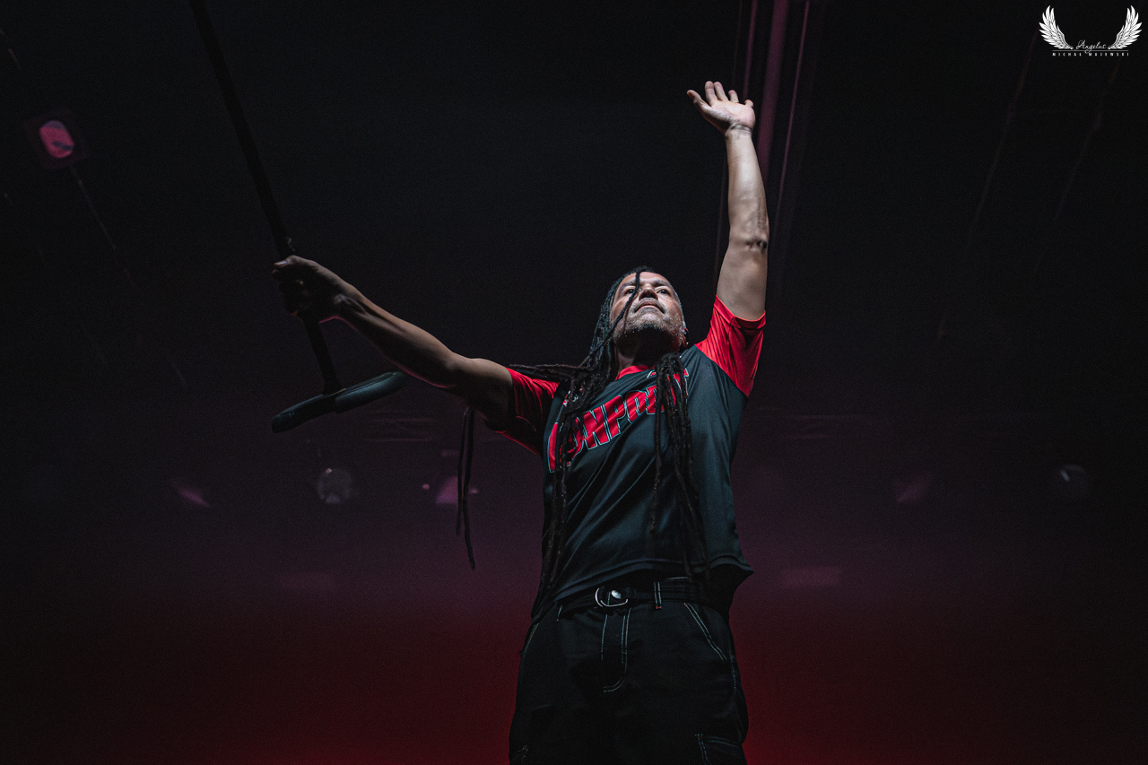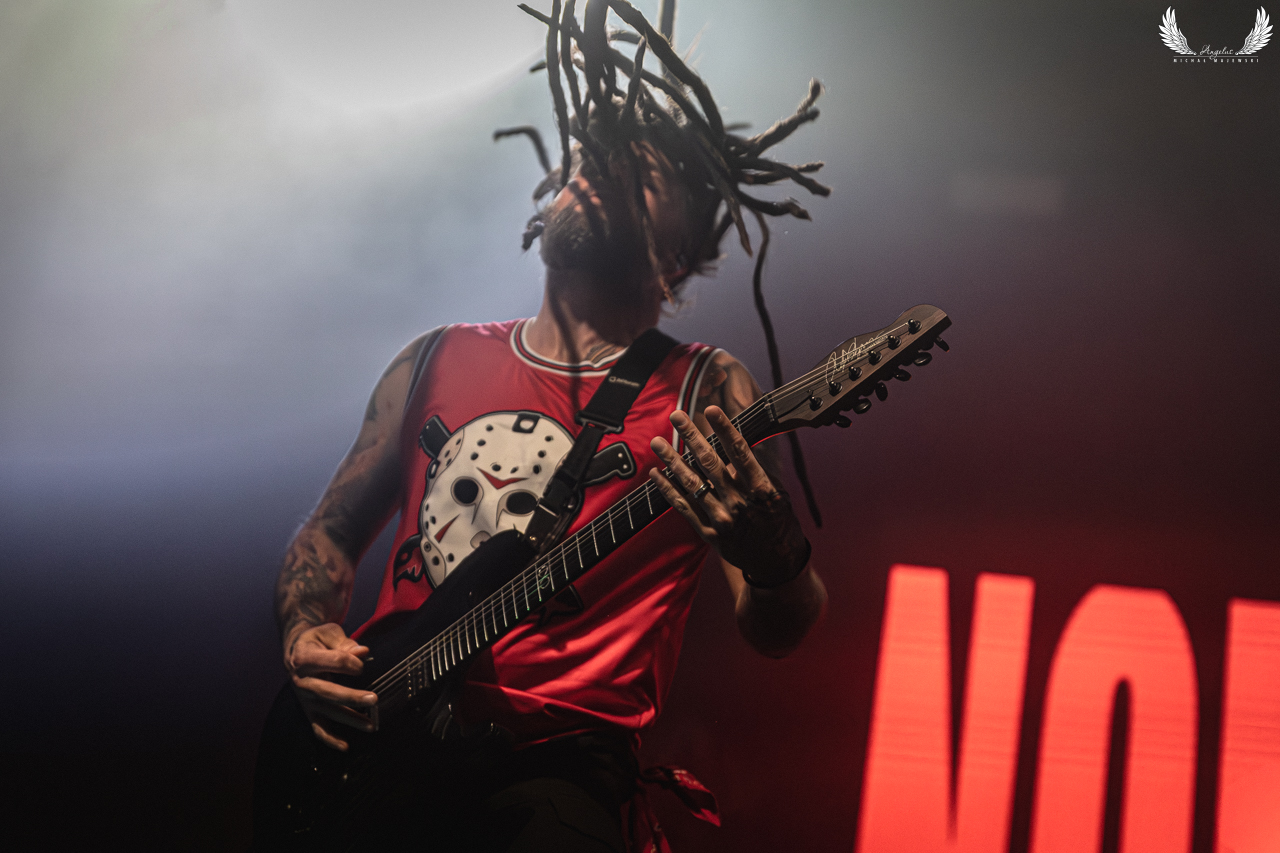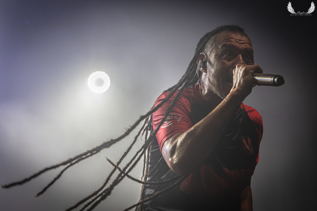 Amerykańska grupa Nonpoint pochodząca ze Wschodniego Wybrzeża a dokładnie z Port Lauderdale została zaproszona jako gość specjalny na tegorocznej trasie Lacuny Coil. Panowie o bardzo bogatej historii (bo też początki zespołu datowane są na rok 1997) zagrali dla wrocławskiej publiczności 50-minutowy set wypełniony swoimi największymi przebojami jak „Bullet With a Name” czy „Breaking Skin”. Pojawił się również cover „In The Air Tonight” z repertuaru Phila Collinsa, na który czekałem najbardziej. Kwintet gra muzykę z pogranicza Korna, P.O.D. oraz Rage Against The Machine i musze przyznać, że kilkukrotnie potupałem nóżką. Może nie zawsze wokal był idealny (szczególnie we wspomnianym coverze) ale był to jeden z lepszych występów przed gwiazdą główną, które w tym roku widziałem. Nie da się przejść również obojętnie obok tego, że Panowie są fantastyczni do fotografowania tylko epileptyczne światła podczas ich występu nie zawsze pozwalają na zarejestrowanie wszystkich kadrów. Serdecznie zapraszam na galerię z koncertu Nonpoint poniżej.
