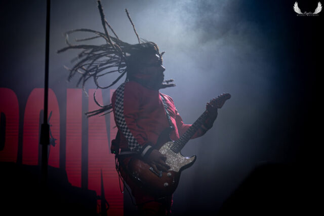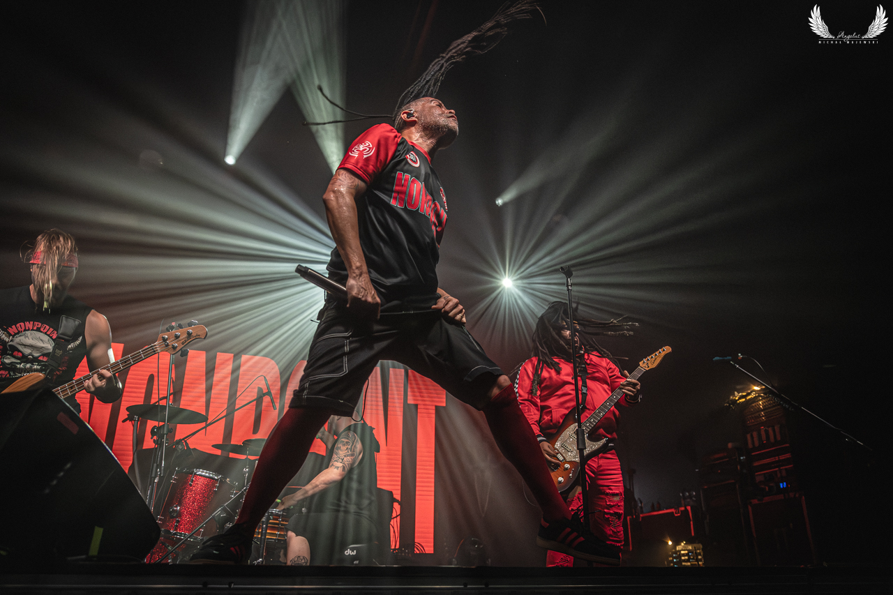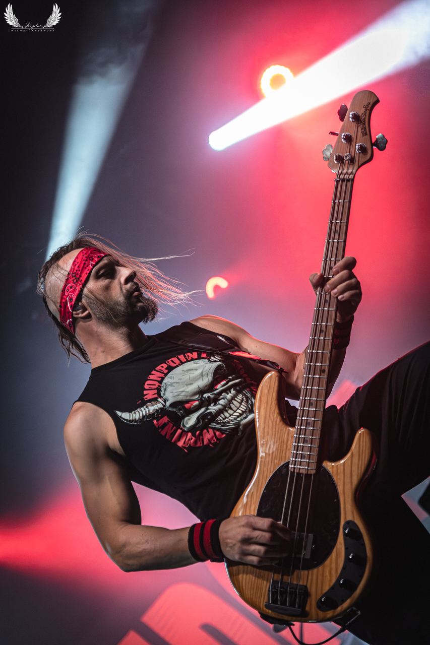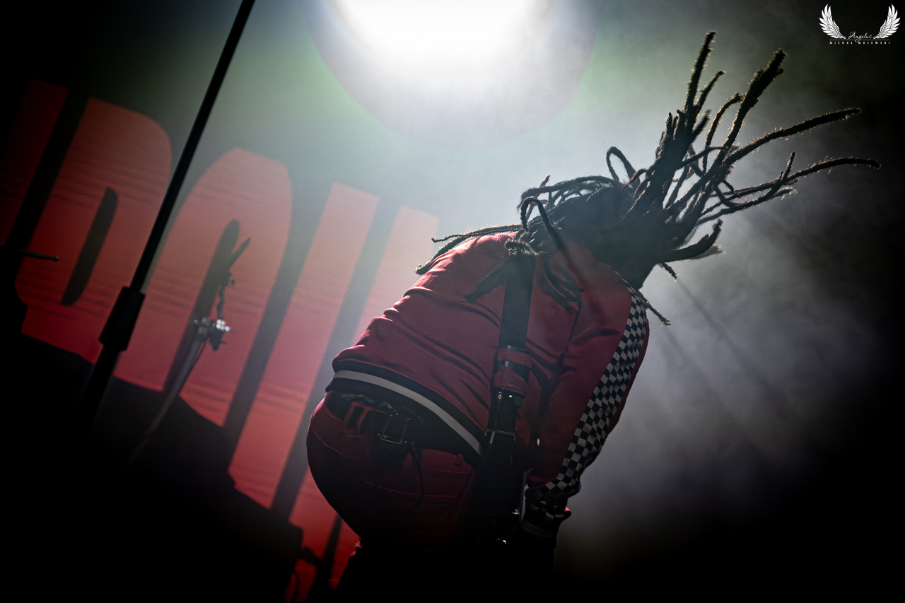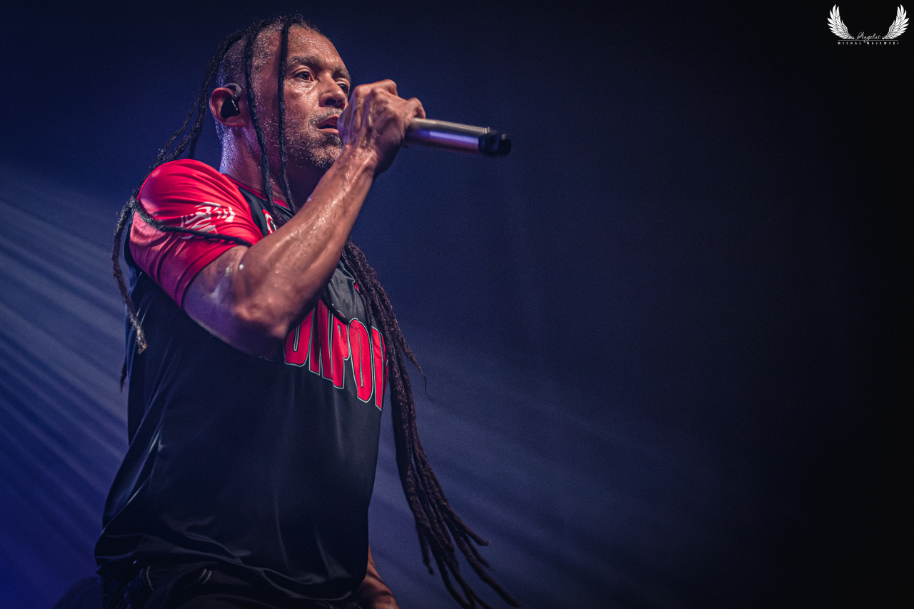 Amerykańska grupa Nonpoint pochodząca ze Wschodniego Wybrzeża a dokładnie z Port Lauderdale została zaproszona jako gość specjalny na tegorocznej trasie Lacuny Coil. Panowie o bardzo bogatej historii (bo też początki zespołu datowane są na rok 1997) zagrali dla wrocławskiej publiczności 50-minutowy set wypełniony swoimi największymi przebojami jak „Bullet With a Name” czy „Breaking Skin”. Pojawił się również cover „In The Air Tonight” z repertuaru Phila Collinsa, na który czekałem najbardziej. Kwintet gra muzykę z pogranicza Korna, P.O.D. oraz Rage Against The Machine i musze przyznać, że kilkukrotnie potupałem nóżką. Może nie zawsze wokal był idealny (szczególnie we wspomnianym coverze) ale był to jeden z lepszych występów przed gwiazdą główną, które w tym roku widziałem. Nie da się przejść również obojętnie obok tego, że Panowie są fantastyczni do fotografowania tylko epileptyczne światła podczas ich występu nie zawsze pozwalają na zarejestrowanie wszystkich kadrów. Serdecznie zapraszam na galerię z koncertu Nonpoint poniżej.
