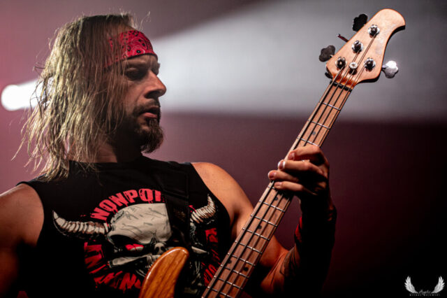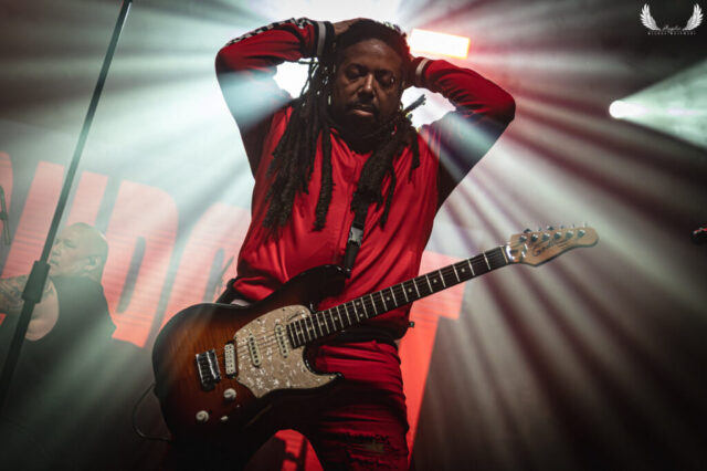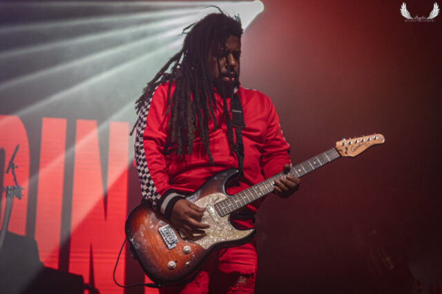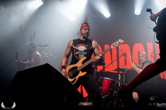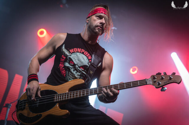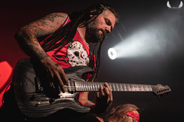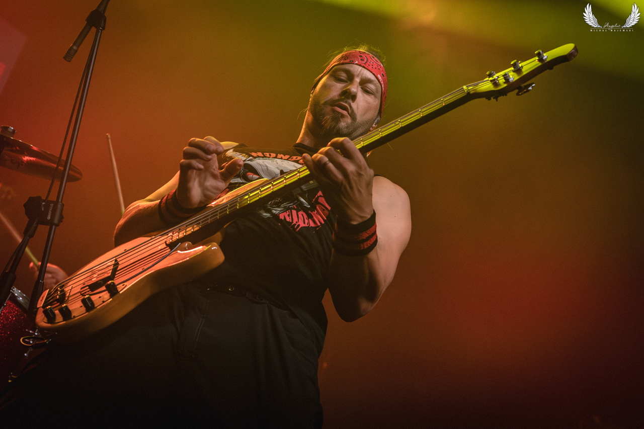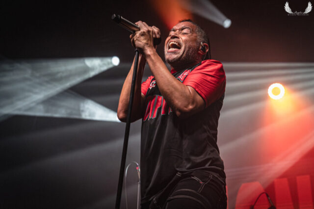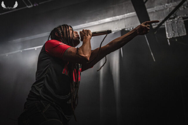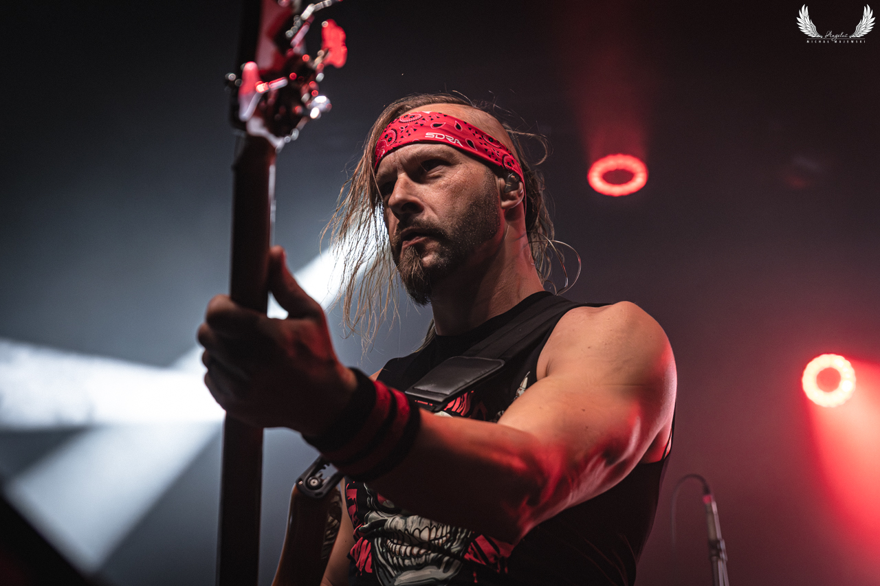 Amerykańska grupa Nonpoint pochodząca ze Wschodniego Wybrzeża a dokładnie z Port Lauderdale została zaproszona jako gość specjalny na tegorocznej trasie Lacuny Coil. Panowie o bardzo bogatej historii (bo też początki zespołu datowane są na rok 1997) zagrali dla wrocławskiej publiczności 50-minutowy set wypełniony swoimi największymi przebojami jak „Bullet With a Name” czy „Breaking Skin”. Pojawił się również cover „In The Air Tonight” z repertuaru Phila Collinsa, na który czekałem najbardziej. Kwintet gra muzykę z pogranicza Korna, P.O.D. oraz Rage Against The Machine i musze przyznać, że kilkukrotnie potupałem nóżką. Może nie zawsze wokal był idealny (szczególnie we wspomnianym coverze) ale był to jeden z lepszych występów przed gwiazdą główną, które w tym roku widziałem. Nie da się przejść również obojętnie obok tego, że Panowie są fantastyczni do fotografowania tylko epileptyczne światła podczas ich występu nie zawsze pozwalają na zarejestrowanie wszystkich kadrów. Serdecznie zapraszam na galerię z koncertu Nonpoint poniżej.