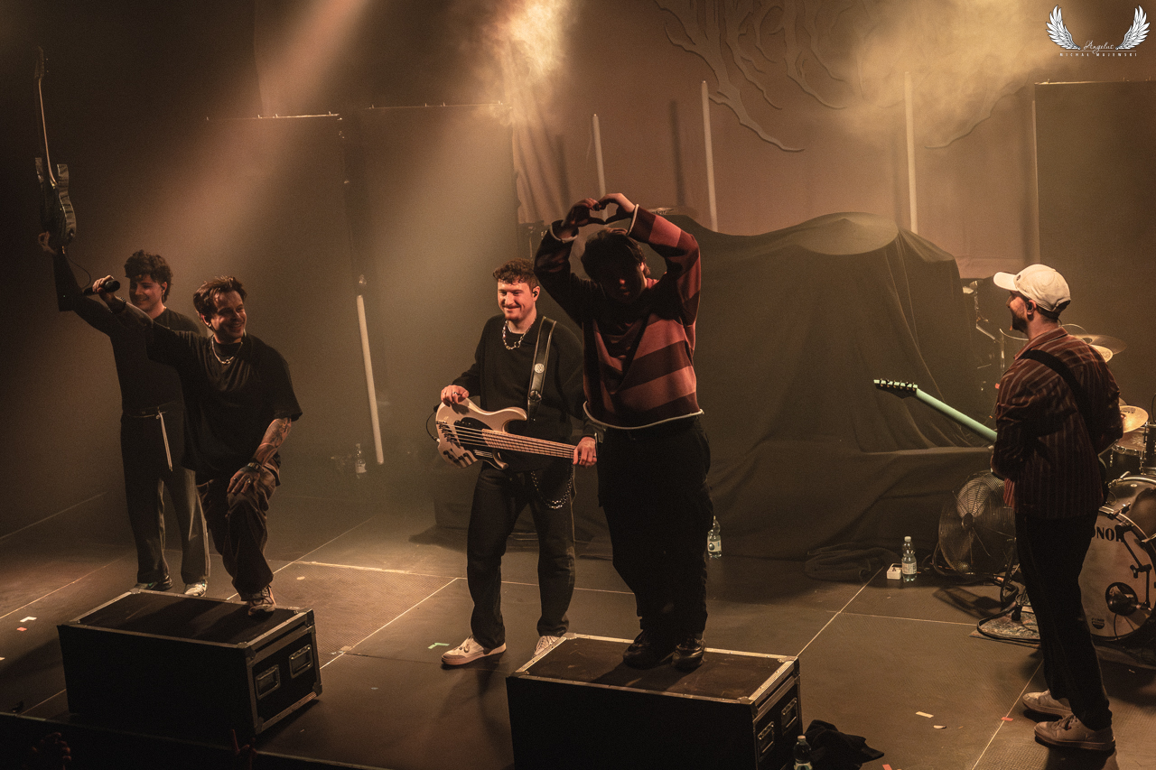 Zespół Our Promise wziął mnie z zaskoczenia. Podczas grudniowego wieczoru z metalcorem w krakowskim Hype Parku, Panowie ze Stuttgartu zagrali najlepszy koncert w tym dniu. Świetne nagłośnienie i rewelacyjny kontakt z publicznością to główne cechy tego występu. Tak jak wcześniej wspominałem problemy z dźwiękiem dało sie zauważyć podczas koncertu annisokay a tutaj wszystko się zgadzało. Instrumenty nie przykrywały wokali Rafaela i Viktora, co szczególnie w tego typu muzyce jest ważne, gdy starasz się usłyszeć tak normlane wokale jak i te wykrzyczane. A takie kompozycje jak „FiftyFive”, „Panic Waves” czy znakomite „Hijack” pozostaną ze mną na długo. Zresztą podpisaną płytę udało sie nabyć tego wieczoru. Zapraszam na galerię z występu Our Promise.