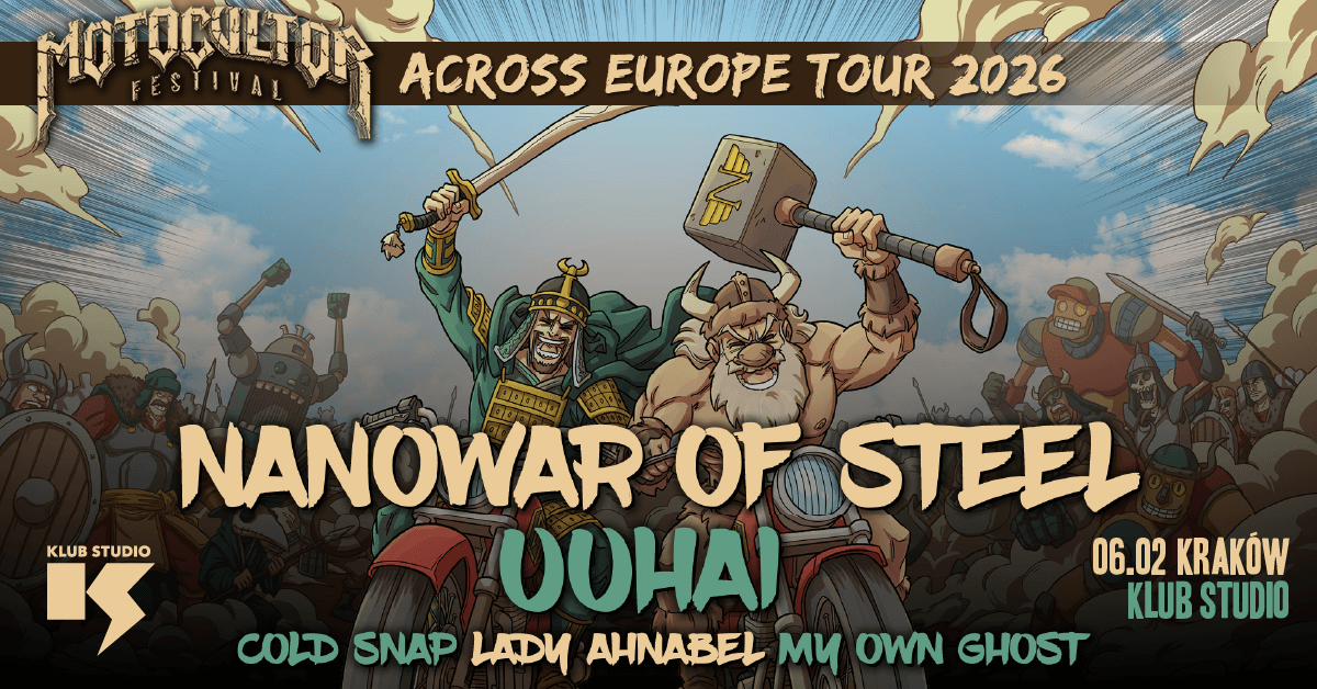 Bilety dostępne na: https://www.klubstudio.pl/koncert/X2Y52B/2026-02-06/NANOWAR-OF-STEEL-UUHAI-supports-Motocultor-Across-Europe-Tour-2026