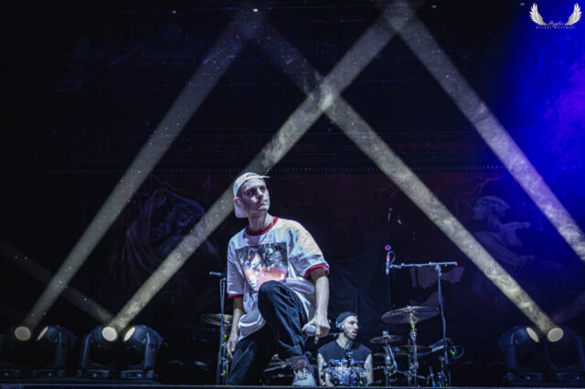 Podczas piątkowego wieczoru w PreZero Arenie Gliwice jako jeden z supportów wystąpił pochodzący z Marsylii zespół Landmvrks. Panowie zaprezentowali też bardzo dobry występ choć przyznaję, że jednak na dłuższą metę byłem zmęczony ich występem ale może to też dlatego, że jednak wśród zespół wykonujących metalcore nie jest to mój top. Ciekawe są rapowane wstawki po francusku co ich niewątpliwie charakteryzuje. Zespół promuje zeszłoroczny album „The Darkest Place I’ve Ever Been”, z którego usłyszeliśmy pięć fragmentów, wśród których pojawiła się najciekawsza według mnie kompozycja „A Line in the Dust”. Galeria z tego koncertu poniżej.