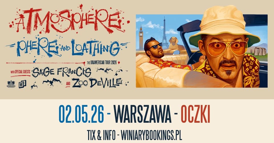 Wraz z Winiary Bookings zapraszamy na jedyny polski koncert ATMOSPHERE, w doborowym towarzystwie – SAGE FRANCIS i ZOODEVILLE! Artyści wystąpią 2 maja w warszawskim klubie Oczki!
