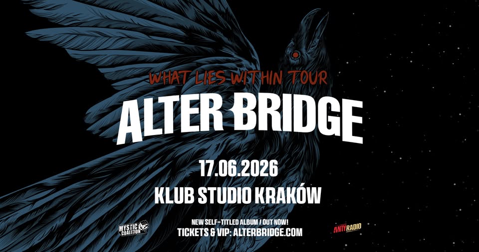 Już 17 czerwca grupa powróci do Polski, w ramach trasy „What Lies Within”. Zagrają koncert dla najwierniejszych fanów, w krakowskim Klubie Studio. Ponad dwie dekady na scenie i ani śladu zmęczenia. Myles Kennedy (śpiew i gitara), Mark Tremonti (gitara, wokal), Brian Marshall (bas) i Scott Phillips (perkusja) kontynuują doskonałą passę. Płyta, zatytułowana po prostu „Alter Bridge”, ukazała się 9 stycznia nakładem Napalm Records. Fantastyczne riffy, porywające refreny, potężne brzmienie najczystszego rocka i to wszystko 12 razy z rzędu – oto zawartość albumu. Takie numery jak „Rue The Day”, „Disregarded”, „Scales Are Falling” czy „Hang By A Thread” z miejsca wejdą do zestawu żelaznej klasyki amerykańskiego zespołu i będą regularnie wracać na koncertach.